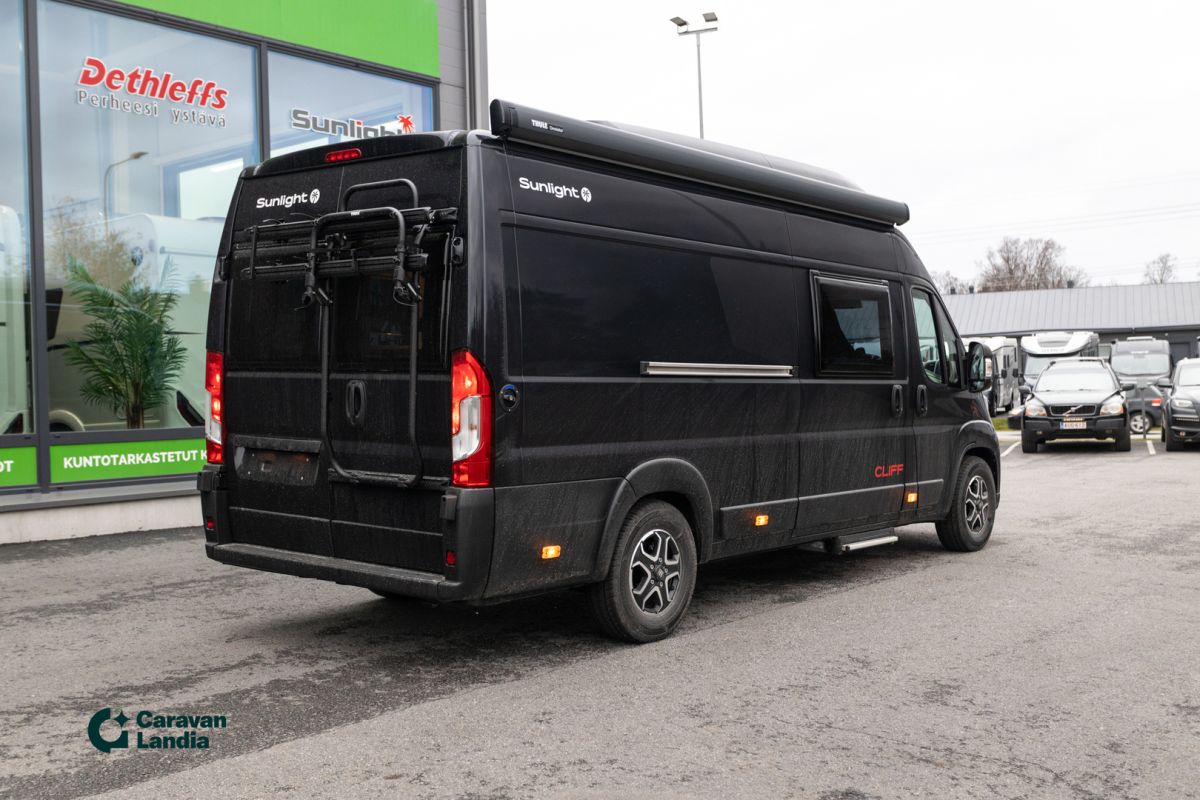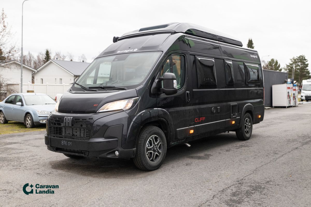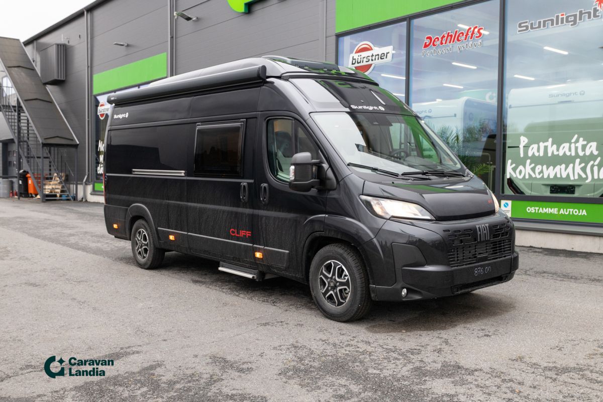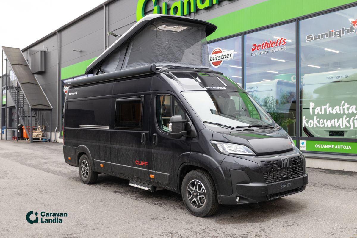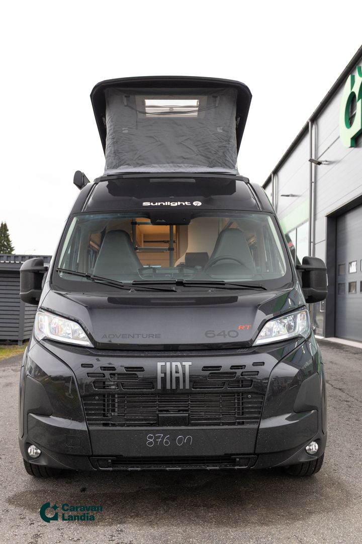 TÄHÄN AJONEUVOON 2,99 % KORKO + UUDEN VARUSTE-EDUT! - TÄHÄN AJONEUVOON 1500 € ERIKOISALENNUS! - Sunlight Cliff 640 on retkeilyauto, joka yhdistää tyylikkään designin, huippuvarustelun ja käytännöllisyyden. Adventure -erikoisvarusteet: Fiat Ducato 3.500 kg - 2.2 Multijet - 103 kW / 140 hv Euro 6 -, Adventure-erikoisteippaukset, Verhoilu Adventure, Markiisi (black), Panoraamakattoikkuna 70 x 50 cm, Suihkuvarusteet (ulosvedettävä käsisuihku, suihkuverho ja kisko, pidike suihkulle), Pesutilan ikkuna, Vaatetanko suihkutilassa, Leveä asunto-osan ulkoaskelma, Pöydänjatke istuinryhmään, Maalattu etupuskuri, Musta alasuoja, Sumuvalot, Nahkainen ohjauspyörä ja vaihdekepin nuppi, Ilmansuuttimet hopeasomistein (Techno Trim), 16 alumiinivanteet, kaksiväriset. Lisävarusteina autoon on tilattu: CLIFF RT Nostokatto-paketti (kattovuode sis. RT-teippauksen), 8-vaihteinen automaattivaihteisto, Ohjaamon kaihdinverhot, Combi 6E -lämmitys (sähkökäyttömahdollisuus) ja digitaalinen käyttöpaneeli, Musta metalliväri, Safety-paketti (Jarruavustin, joka tunnistaa jalankulkijat ja pyöräilijät, Sade- ja hämärätunnistin, Kaistavahti, Liikennemerkki- ja kaukovalotunnistin, Kuljettajan vireystilan tunnistin, Älykäs nopeusavustin Mukautuva vakionopeuden säädin ), Puinen suihkuritilä, Vuoteentekomahdollisuus istuinryhmään poikittain, Eristetty ja lämmitetty harmaavesisäiliö, Puinen suihkuritilä, Pyöräteline 2:lle musta, Isompi 90l polttoainesäiliö., Alv-vähennyskelpoinen