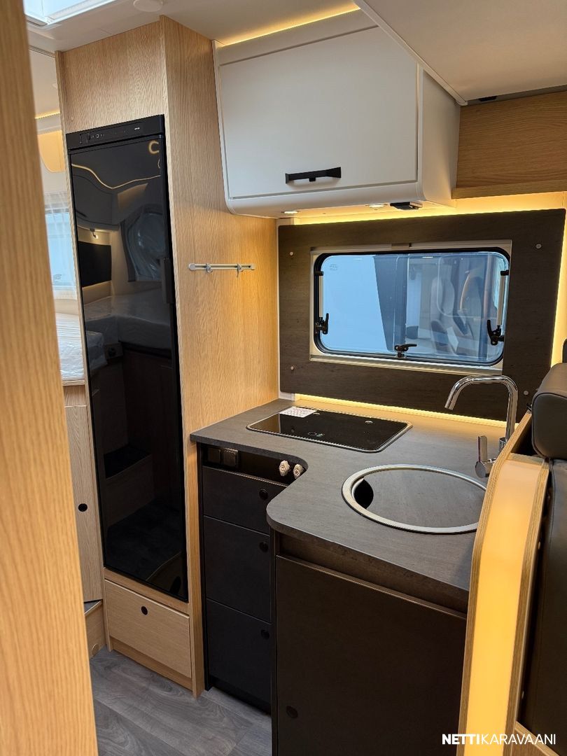 Jääkaappi, Kasetti WC, Kasettiverhot, Liesi, Lämminvesiboileri, Ohjaustehostin, Pakastelokero, Pesuallas, Pysäköintikamera, Suihku, Sähkökäyttöiset ikkunat, Sähköpeilit, Vakionopeudensäädin, ABS-jarrut, Airbag, Ajonvakautusjärjestelmä, Käynnistyksenesto, Luistonesto, Eristetty harmaavesisäiliö, Kattoluukku, Lattialämmitys, Sähköpatruuna, Sähkörappu, Trumatic, Turbo, Ajotietokone, Keskuslukitus: Kaukosäätöinen, Sumuvalot, Erikoisvanteet