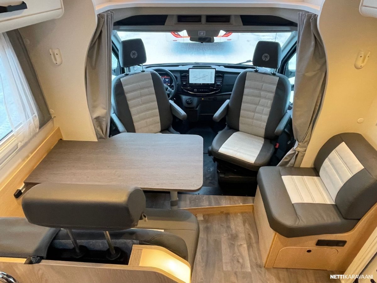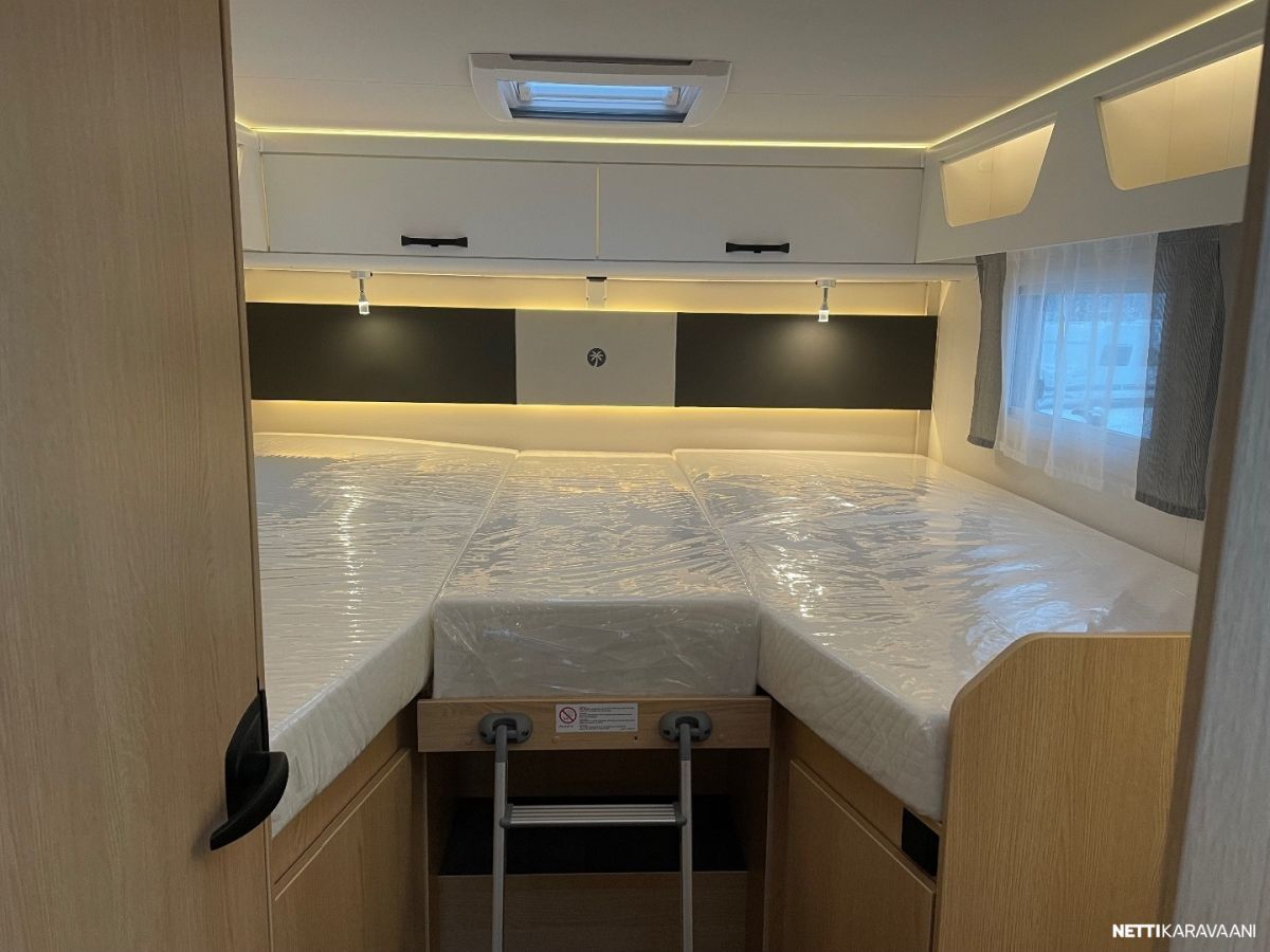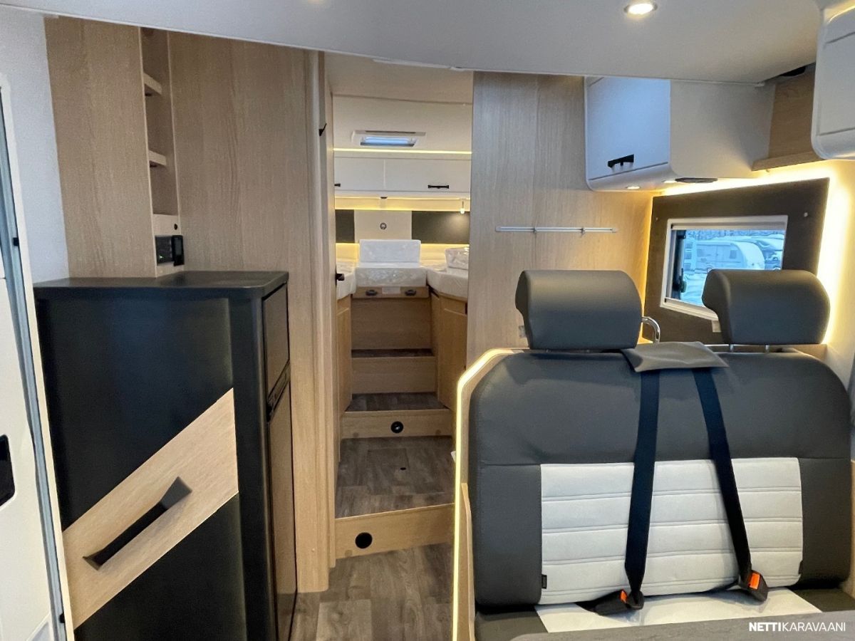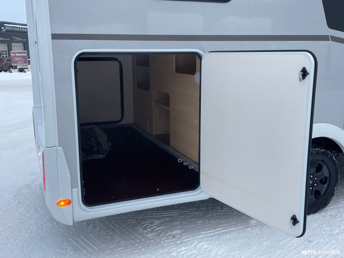 Ajotietokone, Jääkaappi, Kasetti WC, Kasettiverhot, Keskuslukitus: Ilman kaukosäädintä, Liesi, Ohjaustehostin, Pesuallas, Pysäköintikamera, Suihku, Sähkökäyttöiset ikkunat, Vakionopeudensäädin, ABS-jarrut, Airbag, Erikoisvanteet, Eristetty harmaavesisäiliö