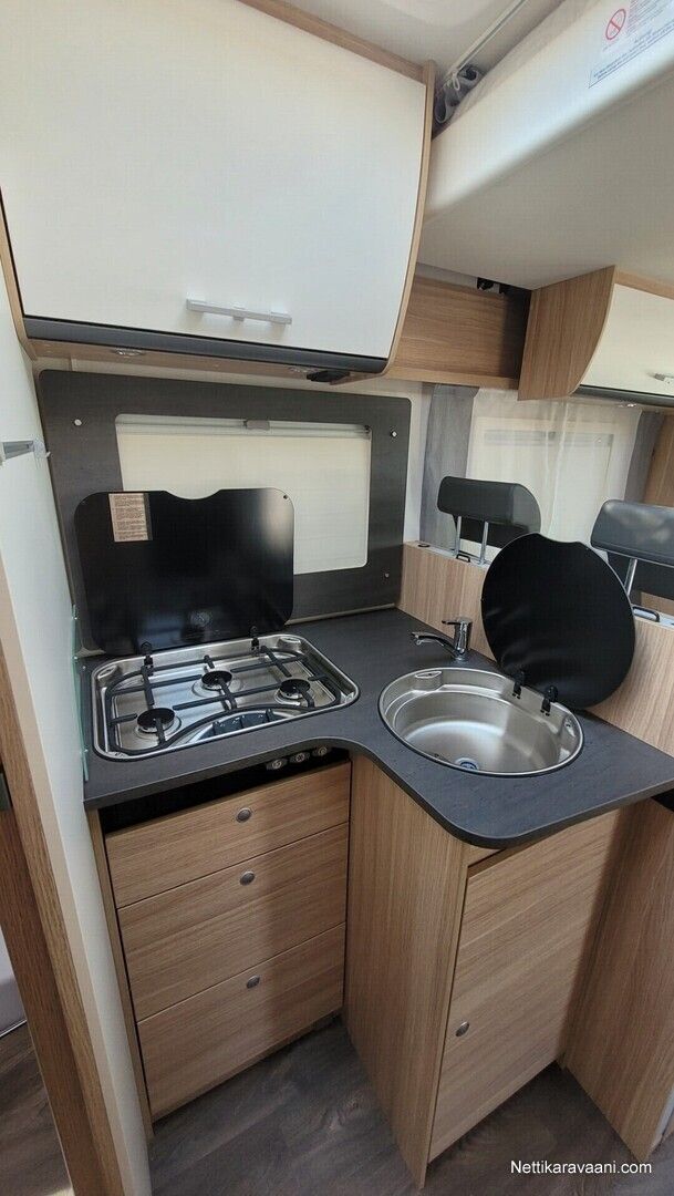 Ajotietokone, Jääkaappi, Kasetti WC, Kasettiverhot, Keskuslukitus: Kaukosäätöinen, Lattiamatot asunto-osassa, Liesi, Lämminvesiboileri, Ohjaustehostin, Pakastelokero, Pesuallas, Suihku, Sähkökäyttöiset ikkunat, Sähköpeilit, Erikoisvanteet, Eristetty harmaavesisäiliö, Lattialämmitys, Sähköpatruuna, Trumatic, Vakionopeudensäädin, ABS-jarrut, Airbag, Käynnistyksenesto, Kattoluukku, Turbo