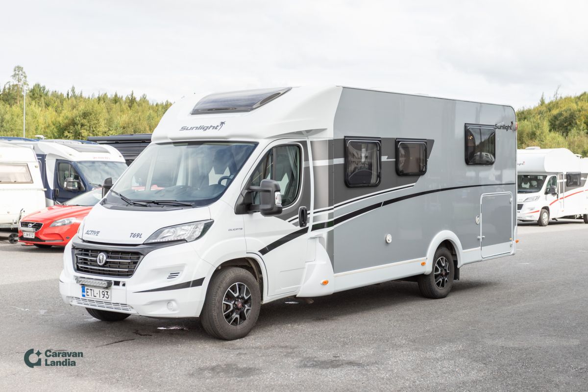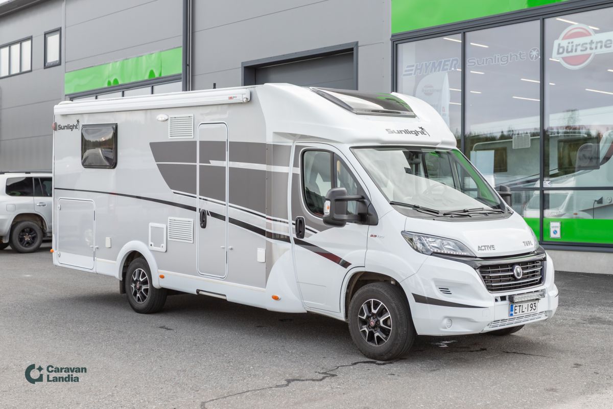 Tyylikäs ja valoisa saarekevuoteellinen Sunlight valmiina seikkailuun. LED-päiväajovalot Erikoisvanteet Markiisi Pyöräteline Hyttysverkko ovi Peruutuskamera Multimediakeskus Navigointijärjestelmä Automaattivaihteisto Ilmastointi ajotilassa Luistonestojärjestelmä Lukkiutumattomat jarrut (ABS) Puolinahkasisusta Sähkökäyttöiset ikkunat Sähköpeilit Vakionopeudensäädin SkyRoof Kattoluukku L-istuinryhmä Iso kattoikkuna Keskuslämmitys Truma Sähköpatruuna Lämminvesiboileri Kaasun ulosotto Sähkörappu L-keittiö Iso-jääkaappi Pakastelokero Liesi Saarekevuode Hubbet ylävuode Kasetti WC Pesuallas Erillinen suihku Takatalli Meiltä voit ostaa etänä vaikka kotisohvaltasi! Kokeile kuinka helppoa ja vaivatonta matkailuajoneuvon ostaminen on., Alv-vähennyskelpoinen