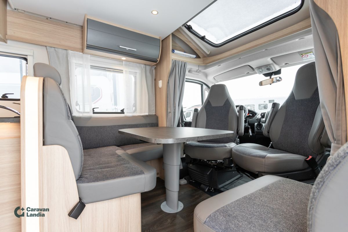 Tyylikäs ja valoisa puoli-integroitu Sunlight miellyttävin varustein. Soveltuu loistavasti pienille perheille. KORIN VARUSTEET: LED-päiväajovalot Markiisi Kaasun ulosotto Pyöräteline Sähkörappu Tukijalat POHJARATKAISU: Takatalli Saarekevuode Kasetti WC Pesuallas Erillinen suihku L-keittiö Hubbet laskuvuode L-istuinryhmä Lisävuode istuinryhmästä LÄMMITYSJÄRJESTELMÄ: Truma Lämminvesiboileri ASUINOSAN VARUSTEET: Skyroof kattoikkuna Iso kattoikkuna Iso-jääkaappi Pakastelokero Kaasuliesi Ilmastointi asunto-osassa Hyttysverkko ovi OHJAAMON VARUSTEET: Vakionopeudensäädin Ilmastointi ajotilassa Luistonestojärjestelmä Lukkiutumattomat jarrut (ABS) Peruutuskamera Mukitelineet keskikonsolissa Puolinahkaverhoilu Sähkökäyttöiset ikkunat Sähköpeilit HUOLTOTIEDOT JA RENKAAT: Erikoisvanteet Ajokorttiluokka B Ota yhteyttä Lari Luokkala 0504404308 Meiltä voit ostaa etänä vaikka kotisohvaltasi! Kokeile kuinka helppoa ja vaivatonta matkailuajoneuvon ostaminen on.