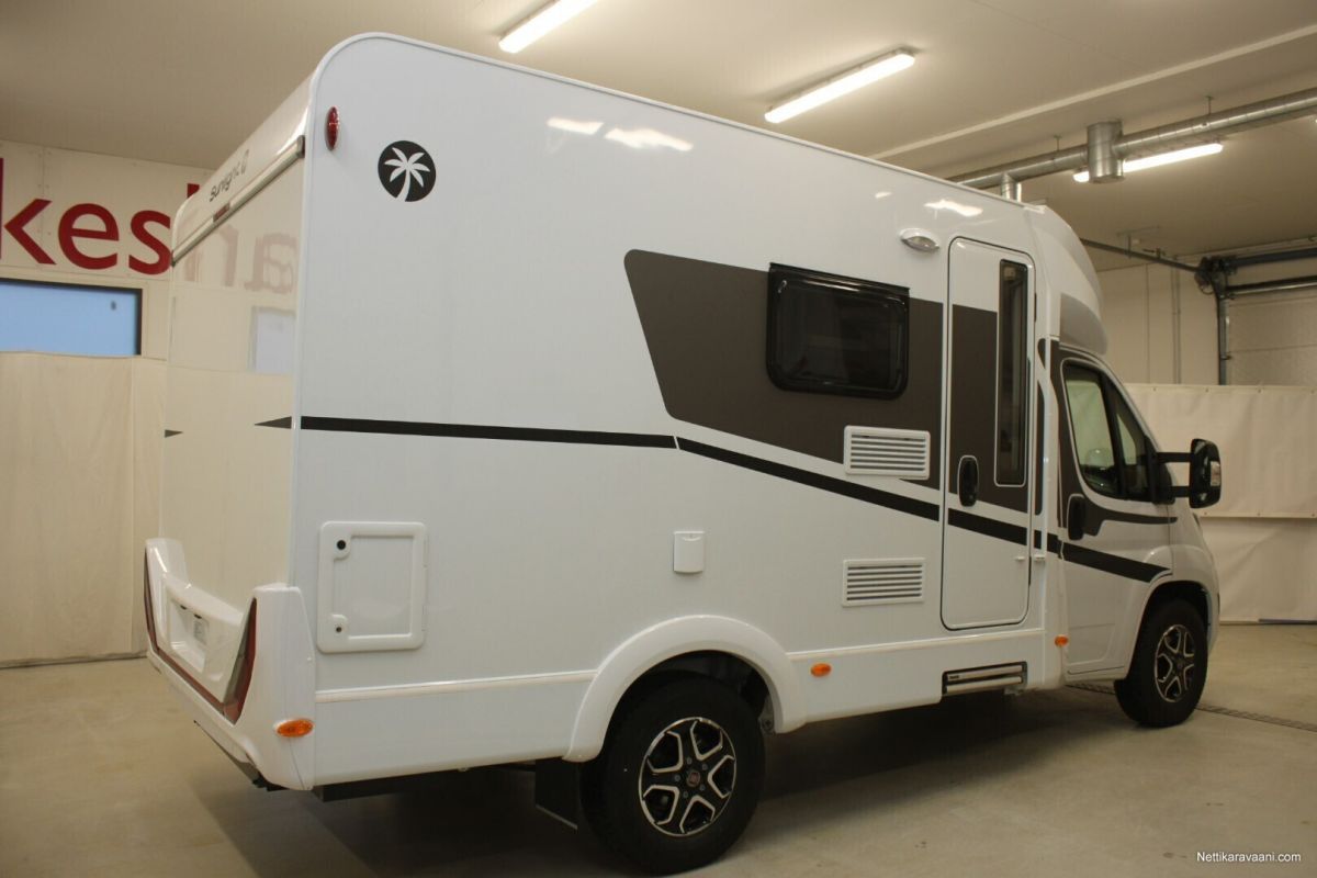 -Basic paketti joka sisältää; Todella tyylikäs valoelementti takavalopaneelin keskiosassa, Asunto-osan ovessa ikkuna, Hyttysverkko-ovi, Panoraamakattoikkuna istuinryhmän päällä, Kirkaslasinen kattoluukku 40x40, Peruutuskameran kaapelivalmius