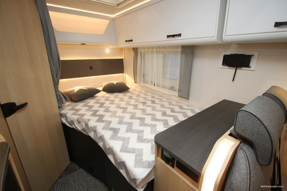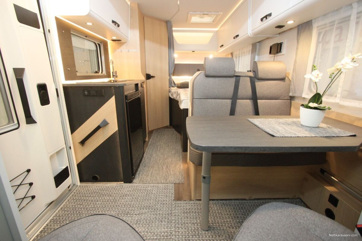 Vaihteisto: Automaatti Polttoaine: Diesel Vetotapa: Etuveto Leveys: 230 cm Pituus: 595 cm Matkustajat: 4 Kokonaismassa: 3 500 kg Makuupaikat: 3 Ajokortti: B Lämmitys: Ilmakeskuslämmitys