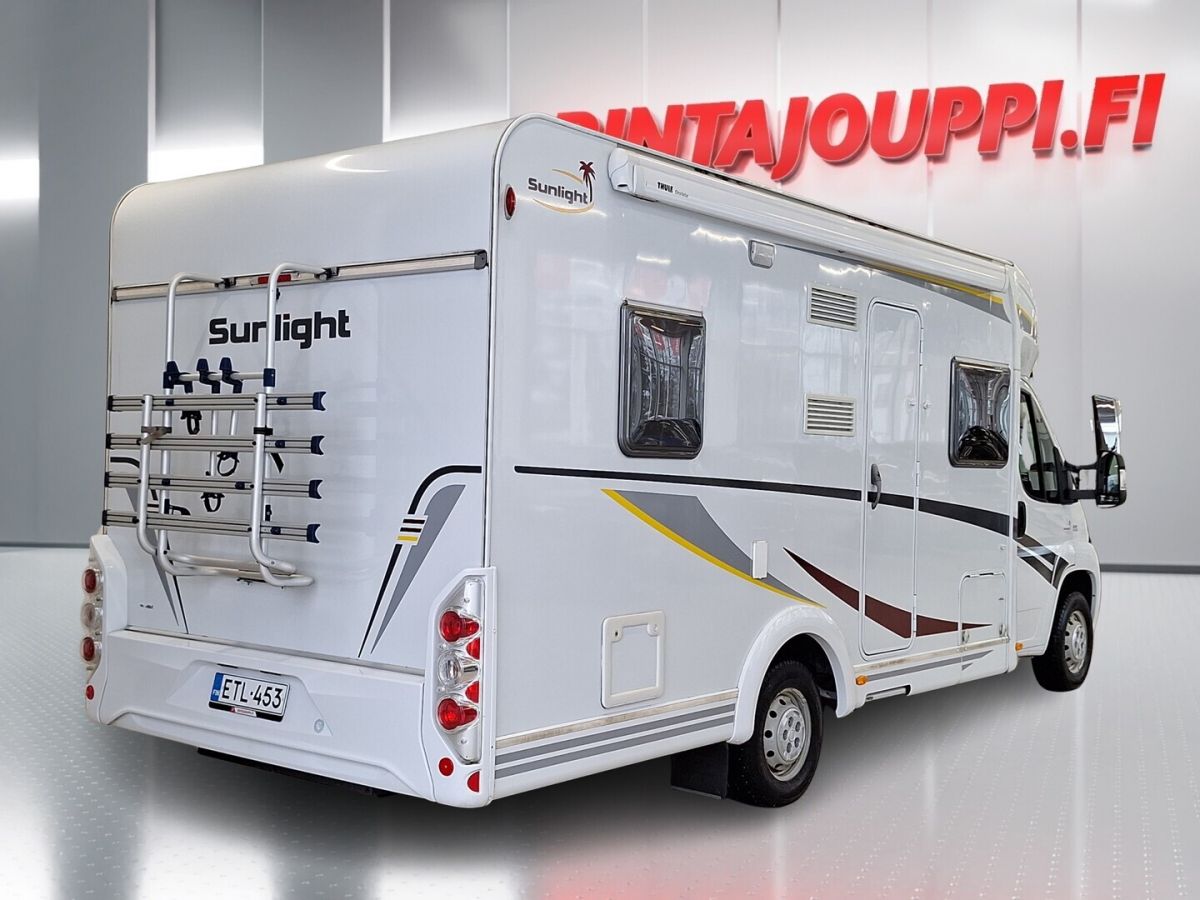 Katso kaikki kuvat, tarkemmat tiedot ja varaa omaksesi: https://www.rintajouppi.fi/auto/sunlight/t64/ETL-453/ * J. Rinta-Joupilta vaihtoautoihin 3 kk lyhennysvapaa. Osta nyt, maksa myöhemmin! Edellyttää osamaksusopimusta. Tarkista kampanjan ehdot myyjältä. * 14 päivän palautusoikeus. Mielenrauhaa autokauppaan. Osta rauhassa, päätä varmuudella. Vain kuluttaja-asiakkaat. * J. autoturva - Käytettyjen ajoneuvojen lisäturva tuo huolettomuutta meiltä ostetun ajoneuvon yllättävään rikkoutumiseen. Matkailuajoneuvoon mahdollisuus hankkia J. autoturva Caravan ( 1 vuosi / 20000km ) Huoltomuistio 2x renkaat + 2x vanteet Vakionopeuden säädin Ohjaamon ilmastointi Multimediasoitin peruutuskameralla Navigointi Kääntyvät Pilot-istuimet ohjaamossa Ohjaamon pimennysverho Dinette kahden istuttavalla sohvalla + iso sivusohva Laskuvuode ruokaryhmän päällä, manuaalinen Truma kaasulla ja lämminvesiboileri L-Keittiö Kaasuliesi Pesuallas Jääkaappi pakastelokerolla Kasetti WC Suihku Ranskalainen parivuode Kattoluukut Kasettiverhot Televisio ja TV-Antenni (Ei tue HD-Kanavia!) Polkupyöräteline Kotelomarkiisi Puoli-Integroitu Saa ajaa B-Kortilla Rek. 4:lle Makuupaikat 4:lle Pituus n. 693cm Leveys n. 233cm Korkeus n. 290cm Omamassa 2916 Kokonaismassa 3495kg Tuontiauto, tuontimaa Saksa (2022) * Tutustu matkailuautovalikoimaamme osoitteesta https://www.rintajouppi.fi/matkailuautot/ tai koko caravan-valikoimaamme https://www.rintajouppi.fi/matkailuautot-ja-vaunut/ * Tämä ja kaikki tuhansista vaihtoautoistamme ovat ostettavissa mistä tahansa päin Suomea - kaikista J. Rinta-Joupin toimipisteistä.