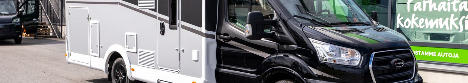 TÄHÄN AJONEUVOON 2,99 % KORKO + UUDEN VARUSTE-EDUT! - Heti toimitukseen huipputyylikäs Sunlight miellyttävin varustein. Ajoneuvoon otettu lisävarusteena: Adventure -erikoisvarusteet Obsidian-musta, Sivuseinät hopeaa sileää peltiä, 16 mustat alumiinivanteet, Verhoilu Adventure, Adventure-erikoisteippaukset, Upotetut ikkunat, Kattoikkuna ohjaamossa, Korkeat takapuskurin muotokappaleet, Korkea 156 l jääkaappi ja erillinen pakastelokero 29 l, 2. luukku takatavaratilaan (koko mallista riippuen), Erillisvuoteiden yhdistämismahdollisuus, One-paketti Black (markiisi, polkupyöräteline 3:lle), Valoelementti takavalopaneelin keskiosassa, Asunto-osan ovessa ikkuna, Hyttysverkko-ovi (yksiosainen), Panoraamakattoikkuna 70 x 50 cm, Kirkaslasinen kattoluukku 40 x 40 cm, Ohjaamon ilmastointi, sis. raitisilma- ja siitepölynsuodattimen, Maalattu etupuskuri, Sumuvalot, Ajovaloissa staattiset kaarrevalot Markiisi ja pyöräteline Nordic-paketti Combi 6E -lämmitys (sähkökäyttömahdollisuus) ja digitaalinen käyttöpaneeli, Sähköinen lattialämmitys, Eristetty harmaavesisäiliö Assistant-paketti Liikennemerkkien tunnistus, Mukautuva vakionopeuden säädin, Navigaattori, Lämmitetyt ja sähköisesti sisään kääntyvät sivupeilit 12V TV-valmius sekä taulutelevision teline Ford Transit 3.500 kg | 2,0l TDCi | 122 kW (165 hv) | Euro 6 | 8-vaihteinen automaattivaihteisto Asunto-osan matot Ohjaamon kaihdinverhot Nostovuode Clima-Plux-elementeillä Puinen suihkuritilä Varmista tietojen oikeellisuus myyjältä!, Alv-vähennyskelpoinen