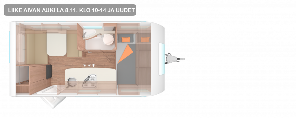 HOT KAMPANJAMALLIN , VAKIOVARUSTEET , Ajoneuvoluokka TRAVEL , Kokonaispituus sisältäen vetoaisan (cm) 635 cm , Korin kokonaispituus sellaisena (cm) 512 cm , Leveys (Ulko) (cm) 220 cm , Leveys (Sisä) (cm) 204 cm , Korkeus (Ulko) (cm) 257 cm , Korkeus (Sisä) (cm) 196 cm , Etuteltan A-mitta (cm) 897 cm , Merkintä: , Ilmoitettu etuteltan A-mitta on määritetty vakiovarustein ja jotkin varusteet voivat muuttaa sitä. (Esim. kokonaispainon nosto tai renkaat) , Massa käyttökunnossa (kg) 1.006 kg (955 kg - , 1.056 kg) , Merkintä: , Sisältää tuotantoon liittyvien ±5 %:n toleranssien ilmoittamisen , Katso huomiot takasivulta , Ajoneuvon todellinen massa (kg) 1.158 kg , Merkintä: , Katso huomiot takasivulta , Suurin teknisesti sallittu massa (kg) 1.350 kg , Merkintä: , Katso huomiot takasivulta , Maksimikantavuus (kg) 130 kg , Jäljelläoleva kantavuus (kg) 75 kg , Rengaskoko 195/70R14 96 M , Vannekoko 6 J x 14 H2 (Alu) , Vuoteet 4 , Merkintä: , Huomiothan, että vuoteiden yhteismäärä saattaa sisältää sekä aikuisten että lasten vuoteet. Kaikki vuoteet eivät ei ole saman mittaisia. Siksi , suosittelemme, että varmistat jälleenmyyjältäsi ajoneuvossa olevien nukkumatilojen mitat jotta voit varmistua että ne sopivat sinun tarpeisiisi. , Suurin mahdollinen vuodemäärä 4 , Merkintä: , Joillekin malleille on valittava tiettyjä lisälaitteita, jotta saataisiin maksimaalisen kokoinen vuode. Jälleenmyyjäsi neuvoo mielellään. , KORI , Ikkunoiden lukumäärä 7 , Asuinosan ovi (cm): L x K 70 x 181 , Eristepaksuus, katto (mm) 33 mm , Eristepaksuus, seinä (mm) 33 mm , Konfiguraatiosi: , Skannaa QR-koodi ladataksesi kokoonpanosi. , W2TDTTH , Sivu 1 / 7 , Lisätietoa: , https://weinsberg.com/fi-fi , Konfiguraatiosi (W2TDTTH) , CaraOne 420 QD (2025) EDITION [HOT] , Eristepaksuus, lattia (mm) 40 mm , ASUINOSA , Vuoteen mitat edessä (cm) 196 x 140 , Vuoteen mitat, keskellä (cm) 390QD:187x117;420QD:181x117;480QDK:185x125;500FDK:185x125;550QDK:185x125 , cm , Vuoteen mitat takana (cm) 181 x 117/88 cm , Vuoteen mitat, nostovuode (cm) – cm , VESIJÄRJESTELMÄ , Tuorevesisäiliön tilavuus litroina 45 l , KEITTIÖ , Jääkaappi (tilavuus litroina) 98 l , SÄHKÖJÄRJESTELMÄ , Asuinosan akku (Ah) 100Ah , 12 V Pistokkeiden määrä – , 230 V Pistokkeiden määrä 2 , 52832-01 Jousitettu alusta , 152834 Yksiakselinen , 150065-01 Vahvistetut tukijalat , 100570 Vetoaisan kate (ei mahdollista polkupyörätelineen kanssa) , 150267 Kitkavetopää , 152836 Hydrauliset iskunvaimentimet , 152862 5-pulttinen pyörän kiinnitys , 152837 Peruutusautomatiikka , 152838 Servo -avustettu seisontajarru , 150111-04 Kokonaismassa 1.350 kg*** (1.350 kg alusta) , 150109 Alumiinivanteet yksiakselinen , Merkintä: , EU-rengasmerkinnät, katso liite ”EU-rengasmerkinnät”. , Ovet , Tuotenro , 102906 Ulko-ovi: WEINSBERG TREND; 1-osainen, ilman ikkunaa , 100832 Hyönteisverkko-ovi , 102840 YHD en avaimen lukitusjärjestelmä , Huoltoluukut ja takatallin ovi , Tuotenro , 100612-09 Huoltoluukku 100 x 40.5 cm edessä oikealla , 102914-02 Kaasupullokotelon luukku sivuseinässä, metallipohja 2:lle 11 kg kaasupullolle , Ikkunat / Kattoluukut / Ilmanvaihto , Tuotenro , 101712 Kasettiverhot ikkunoissa (pimennysverhot ja hyttyssuoja) , 102923-01 Kaksinkertaiset, aukaistavat sivuikkunat verhoilla, sävytetty. (Keittiön ikkunassa hyöteisverkko ja , pimennysverho) , 102920-01 Ilmanvaihtoventtiili (edessä) , 101850 Avattava ikkuna eteen , 102619-02 Kattoluukku 40 x 40 cm hyttysverkolla ja pimennysverholla, kirkas (keskellä) , 100750-03 Kattoluukku 70 x 50 cm hyttysverkolla ja pimennysverholla (takana) , 100960-04 Kattoluukku 28 x 28 cm hyttyssuojalla (WC-tilat) , 101666 Avattava ikkuna 52 x 50 cm hyttysverkolla ja pimennysverholla, WC-tilat , Materiaalit / Ajoneuvoteippaus , Tuotenro , 100887 GRP-katto, jossa tehokas suoja rakeille , 101604 Valkoinen sileä pelti sivuseinissä – yksiakselinen , 102036-01 Jääkaapin tuuletusritilän talvisuoja (2kpl) , 103552-04 Folioteippi WEINSBERG , 103551-22 Erikoisteippaus EDITION [HOT] , Valaistus / Tekniikka , Tuotenro , 252936 Markiisivalo LED , 102933-15 Kolmas jarruvalo , 552941-02 Ilmastoidut kaapit ja säilytyslokerot , 552940-20 Kaluste sävy Tiberino ja Piquet Beige , 552944 PVC Lattiamatto , Asuminen / Makuutilat / Sisusta / Tekstiilit , Tuotenro , 552945-01 EvoPore HRC patja, kiinteät vuoteet , 552964-03 Kulmahyllyt U-istuinryhmässä , 552952 Keittiötason yläpuolen valaistus ilman kupua , 552954-05 Verho huoneen jakajana , 552335-95 Vakioverhous: Selite: EDITION [HOT] , Keittiö / Kylpyhuone , Tuotenro , 402985-01 Kolmen polttimen liesi lasikannella, ruostumattomasta teräksestä valmistettu, upotettu allas , 402991-09 Jääkaappi 98 litraa , Merkintä: , Kaasun käyttö ajon aikana sallitaan vain yhdessä mono- tai Duo-controlin kanssa , 453509-05 Puinen kaappi, hyllyt , 450520 Suihkusetti kylpyhuoneeseen, sis. Ulosvedettävä suihkuosa, Suihkupidike ja suihkuverho , 453503-03 Kasetti-WC DOMETIC, kääntyvä , Kaasu / Lämmitys / Ilmastointi , Tuotenro , 302973 Kaasujärjestelmän paine 30 mbar , 302974 Kaasuletku, versio D/AT/ES/FI/BE/IT/NL/DK , 302978 Paineenalennin, versio D/AT/ES/FI/BE/IT/NL/DK , 551054 Ilmankierrätysjärjestelmä 12 V , 352968-01 Kaasulämmitin: TRUMA S 3004 , 550086 Lämmittimen sähkövastus TRUMA Ultraheat , 450083 TRUMA Therme lämminvesijärjestelmä keittiössä ja kylpyhuoneessa (vain 230 V) , 550279 Sähköinen lattialämmitys, pituus 550 saakka , 453510-01 Vesijärjestelmä uppopumpulla , 453510-08 Vesijärjestelmä yksiote -hanalla , 453510-04 Keskitetty viemäri, ulkoinen viemäri lattian alla , 450623 Kiinteä tuorevesisäiliö 45 litraa , 450092 Harmaavesisäiliö 25 litraa - pyörillä , Sähköjärjestelmä / Multimedia / Turvallisuus , Tuotenro , 253525 Vetokoukun pistoke, 13-napainen , 253534-01 Sisävalaistus täydellisesti 12 V , 253522 CEE ulkopistoke 230 V automaattisulakkeella , 253529 Vikavirtasuoja , 253528-